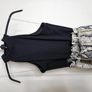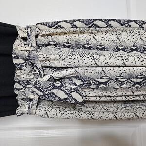 Elevate your wardrobe with this chic maxi dress that blends elegance and trendy style. The top features a sleek black sleeveless design, offering a flattering fit, while the dramatic floor-length skirt showcases a captivating snake print. Ideal for dressy events or casual outings, this dress combines comfort with sophistication.