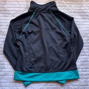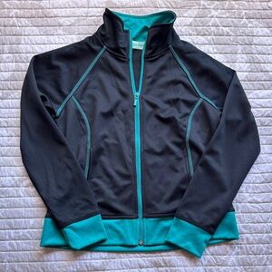 Elevate your style with this chic jacket. Featuring a sleek black design with vibrant teal accents, it's perfect for any casual outing.