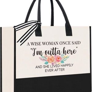 Stylish Black and White “A Wise Women Once Said I’m Outta Here” Tote Bag