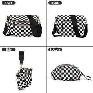Stylish Black and White Checkered Crossbody Purse with Zipper Compartments