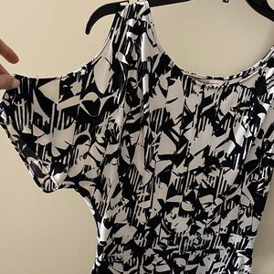 Elevate your wardrobe with this chic black and white dress. Perfect for any occasion, this dress offers a modern and stylish look.