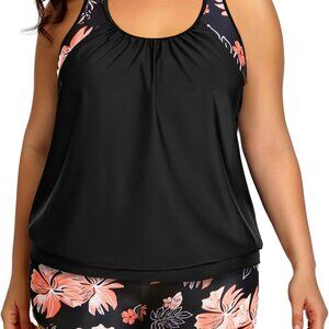 Stylish Blouson Tankini for Plus Size Women - Tummy Control & Racerback Support