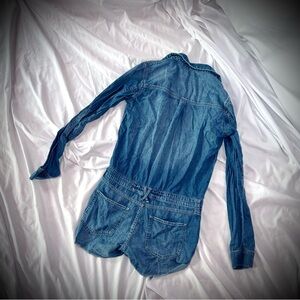 PRE-LOVED Abercrombie blue denim romper with button-up front and drawstring waist. Perfect for casual outings.