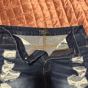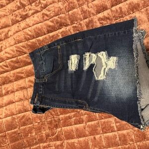Upgrade your wardrobe with these chic blue distressed denim shorts. Perfect for casual outings, these shorts offer both comfort and style. Never work but doesn’t have tags.