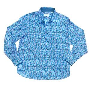 Upgrade your wardrobe with this stylish blue floral button down shirt. Perfect for casual outings, this shirt combines comfort with a touch of elegance.( pit2pit 25’ Length 30’ Approximately )