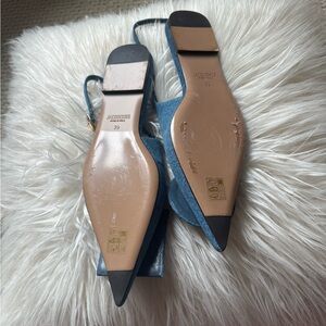Step out in style with these chic blue slingback flats. Perfect for any occasion, these shoes offer both comfort and elegance. Brand new. Never worn. Come with box and dust bag.
