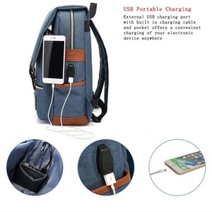USB CHARGE PORT: With USB chargeing port outside and built in charging cable and pocket inside, this usb charging port design laptop backpack gives convenient way to charge your phone while walking. Put your power bank in the exquisite pockets inside ,then connect the power bank with the phone on your hand through the original usb cable and the usb charging port, just free your hands and don't worry about phone power ran out when you walking.
