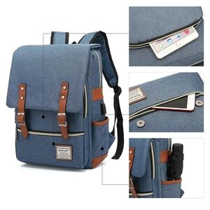 Stylish Blue and Brown Backpack Vintage Style NWOT