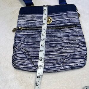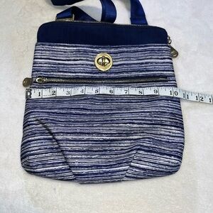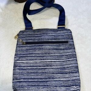 Baggallini Hanover Blue White Stripes Crossbody Purse Bag Gold Accents Nylon