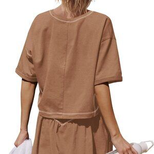 Features: This chic 2-piece skort set features a relaxed V-neck T-shirt with dropped shoulders for a trendy vibe, paired with a comfy smocked waist skort with a drawstring for the perfect fit. Made from soft, breathable fabric—ideal for hot days—it's designed to keep you feeling fresh and looking cute whether you're out running errands or enjoying a casual outing.