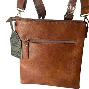Stylish Brown Vegan Leather Crossbody Bag Adjustable Strap NWT