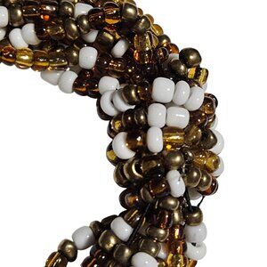 Stylish Brown White Seed Beaded Multi-Strand Stretch Bracelet Minimalist Fashion