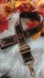Stylish brown strap with gold accents. Features adjustable length and gold hardware.