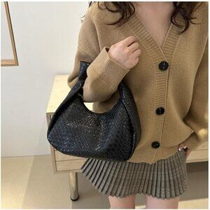 Features: Chic woven tote with knot handle, versatile shoulder or handbag with zip closure. Made with high-quality PU leather and smooth hardware for a refined look. Spacious enough for your daily essentials — cellphone, wallet, keys, makeup, and more. The non-adjustable handle adds to its elegant silhouette.