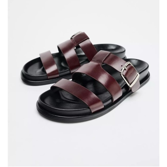 Elegant slide sandals with a sleek burgundy strap design. Perfect for casual outings. Cow Leather.