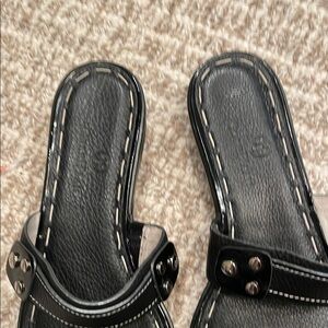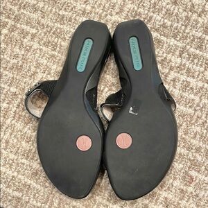 Stylish COLE HAAN Black Toe Ring Sandals with Silver Accents Sz 7.5