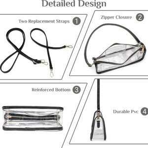 Stylish Clear Stadium Handbag for Events - Versatile Crossbody with 2 Straps