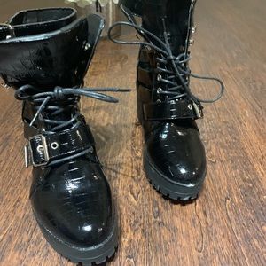 Never worn: Black, Size 9 US, 39 UK , leather material , lace up