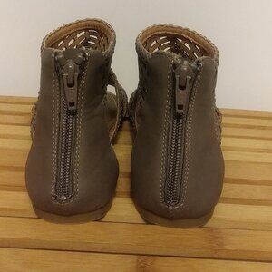 report sandals, gladiator sandals, taupe sandals, flat sandals, summer shoes, boho sandals, zip back sandals, woven sandals, size 8.5, comfy sandals, casual chic, synthetic sandals, rubber sole