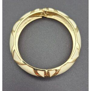 Stylish Cream Enamel & Gold Tone Hinged Bangle Bracelet Criss Cross Design MINT