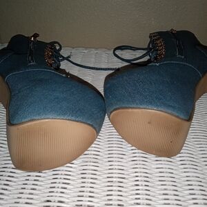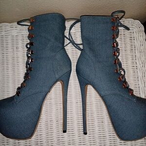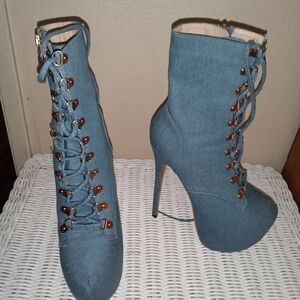 LIKE NEW Elevate your style with these chic denim lace-up platform boots. Perfect for a bold fashion statement.