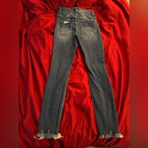 Elevate your style with these chic distressed skinny jeans. Featuring a classic blue hue, they are perfect for any casual outing.