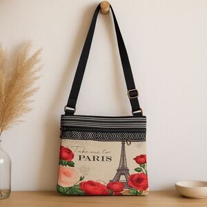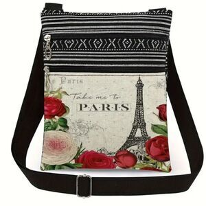 Stylish Eiffel Tower Print Mini Canvas Crossbody Messenger Bag: