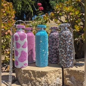 Introducing our dazzling reusable thermos flasks, perfect for keeping drinks hot or cold. Made from high-quality stainless steel, these flasks feature leak-proof caps and are adorned with sparkling rhinestone designs.