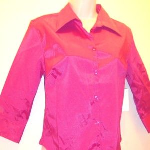 Vintage Beautifully Designed Stylish Fuchsia Shiny Button Down Summer Fun Top Shirt Size S. It will be great for work, church, school, summer and beyond. It is a must have.