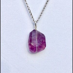 Stylish Amethyst Gemstone Necklace! Amethyst has been highly esteemed throughout the ages for its beauty & legendary Healing powers to stimulate and soothe the mind and emotions. The Ancients considered it a “Gem of Fire,” a Precious Stone worth, at times in history, as much as a Diamond. (Bundle 3 listings & Save with my Discount!) Shape/size vary.