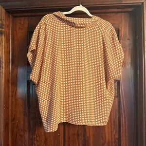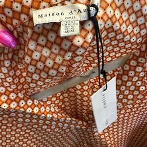 Add a touch of style to your wardrobe with this geometric button down shirt. Its vibrant orange hue makes it perfect for any occasion.