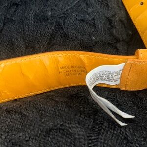 Elegant gold belt with a unique buckle design. Perfect for adding a touch of sophistication to any outfit. Suede