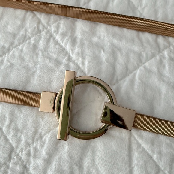 Stylish Gold Metal Stretchy Belt with Gold Buckle