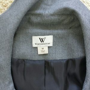 Gray blazar with ruffles that is slightly cropped to wear with high waist skirt! Only worn once.