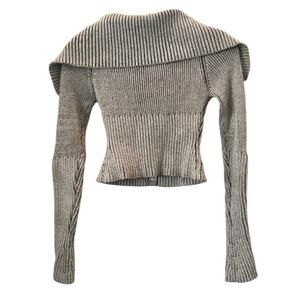 Elevate your wardrobe with this chic gray ribbed sweater. Perfect for any occasion, it features a unique design that combines comfort and style.