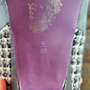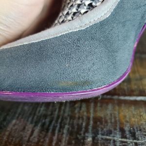 Elevate your style with these chic gray and black heels. Perfect for any occasion, these shoes offer both comfort and elegance.