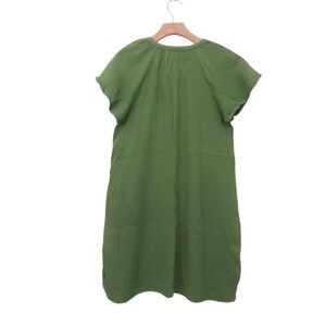 Trendy green V-neck dress with short sleeves. Perfect for versatile wear.