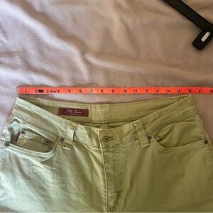 Light green kick flare jeans, 28 inch inseam, 32 inch waist - good for petite, ankle length