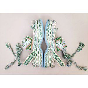 Step out in style with these chic green and white sandals. Perfect for any occasion, these sandals offer both comfort and elegance.