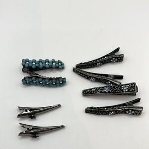 Stylish Hair Clips with Turquoise Floral Design Alligator Clips 8 Assortment