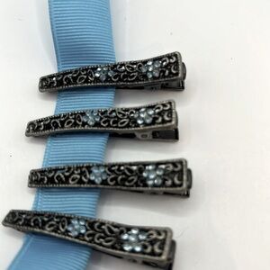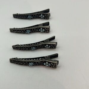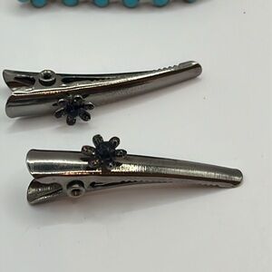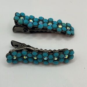 Set of hair clips featuring intricate turquoise floral patterns. Perfect for adding a touch of style to any look.
