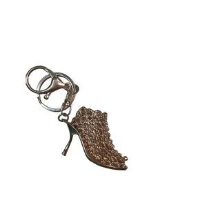 Stylish High Heel & Purse Keychain Set Gold Rhinestone Charm Jewelry