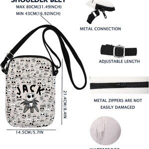 Features: This trendy unisex bag features a fun horror movie theme with high-quality canvas that’s durable and waterproof. It has three pockets, a smooth zipper, and an adjustable strap, making it perfect for daily essentials like your phone, wallet, and cosmetics.