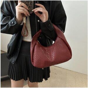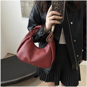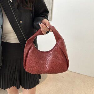 Features: Eye-catching knot handle and woven print add a unique touch. Nice-sized interior with a top zipper for secure storage, lightweight and comfortable to carry as a shoulder bag or handbag. Durable PU leather material feels smooth and luxurious.