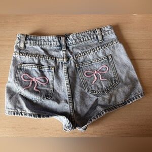Trendy light blue denim shorts with pink bows on back pockets. Perfect for casual wear. New without tags