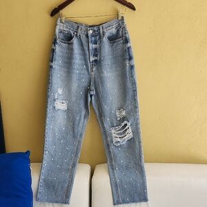 Elevate your casual wardrobe with these stylish light blue straight leg jeans. Featuring trendy distressed details, they offer a chic and comfortable fit for any occasion.
