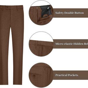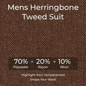 Features: Classic herringbone tweed design with a double-breasted jacket, peak lapel, and smart details like resin cufflinks and multiple pockets. The pants feature a double safety buckle and a comfy micro-stretch waistband, perfect for all-day wear.