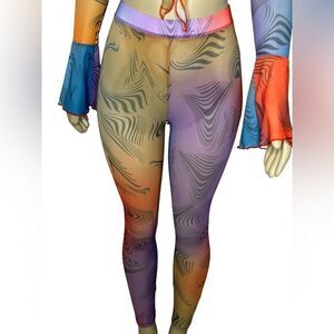 Stylish Long Sleeve Mesh Crop Top & Leggings Pants Set Breathable Trendy