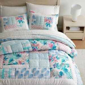 Our take on the traditional pillowcase , Lua brings a colorful, contemporary look to patchwork. Crafted of soft organic cotton, the textural design features bold, botanical patterns rendered in a vibrant palette for a fresh feel.