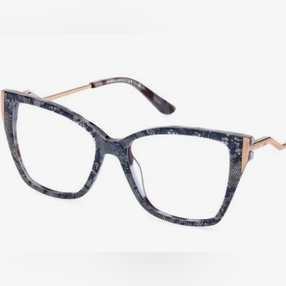 Eyeglasses Guess by Marciano GM0399, with a square frame in acetate, offer a modern and decisive look. The blue color completes the structured design, perfect for those looking for a strong definition in their style. Recommended for round and oval faces, since they add corners and definition to the softer features. Ideal for women.